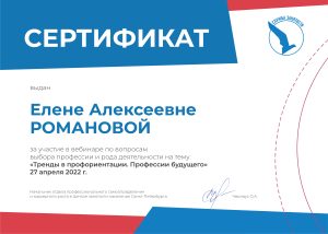 - «Профориентатор будущего» (196 ак.часов). Школа карьерного менеджмента (2025)