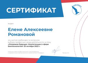 - «Опережая будущее. Компетенции в сфере биотехнологии». Центр занятости населения Санкт-Петербурга (2022)