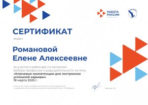 - «Ключевые компетенции для построения успешной карьеры». Центр занятости населения Санкт-Петербурга (2025)