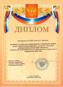 2005 год — обучающий проект лагерь “Архитектура Будущего” для детей и молодежи награжден за новизну и уникальность