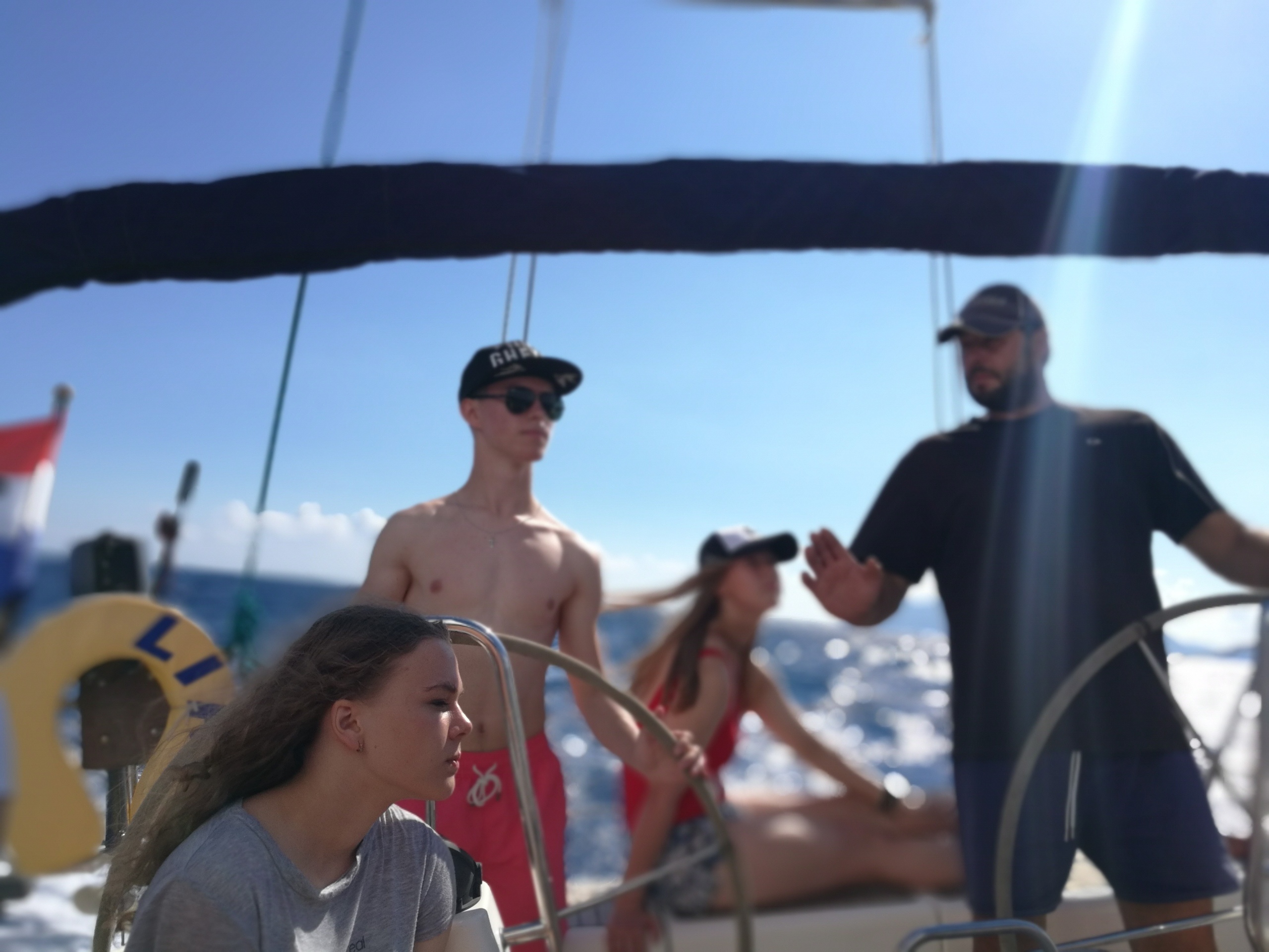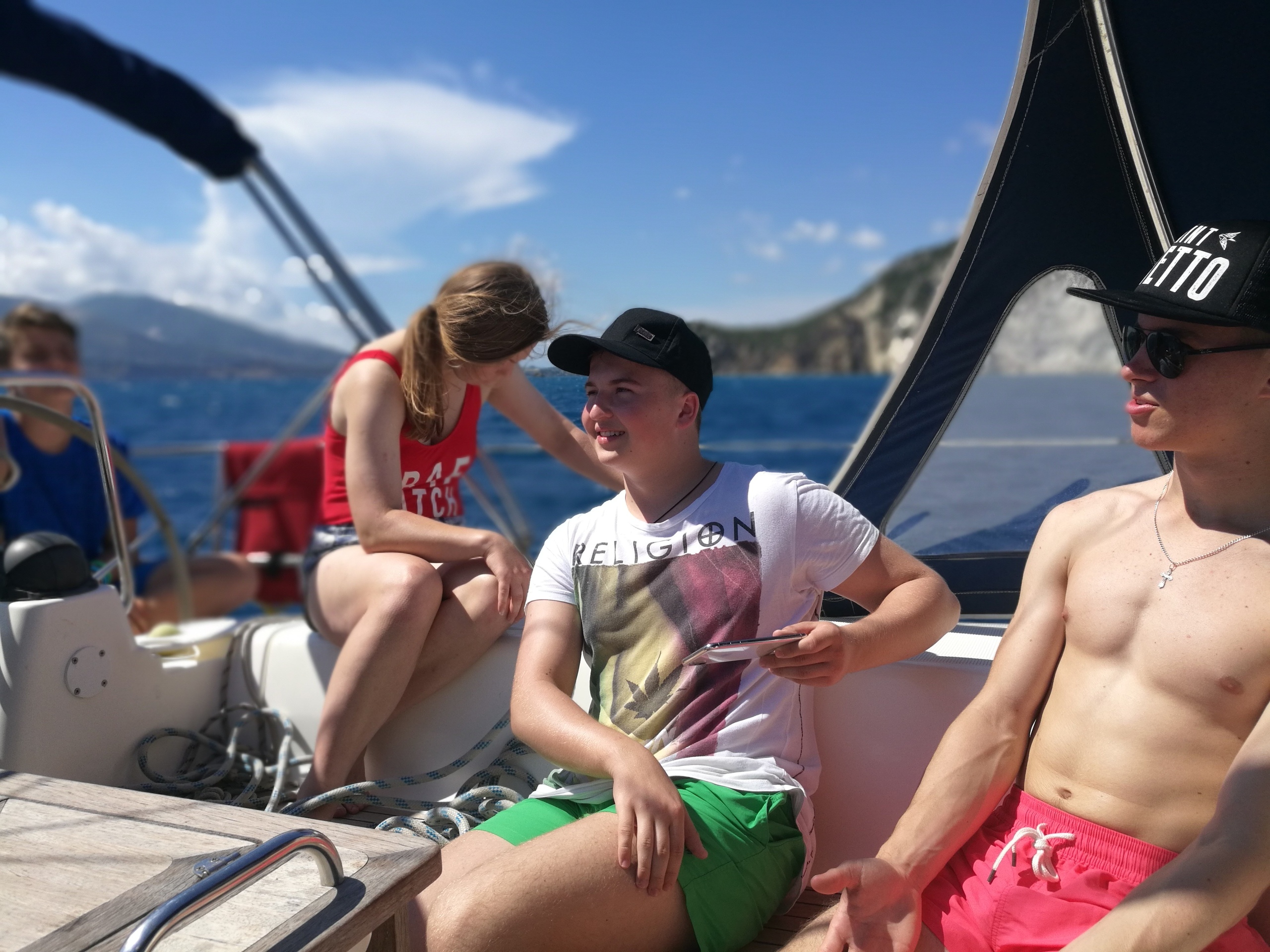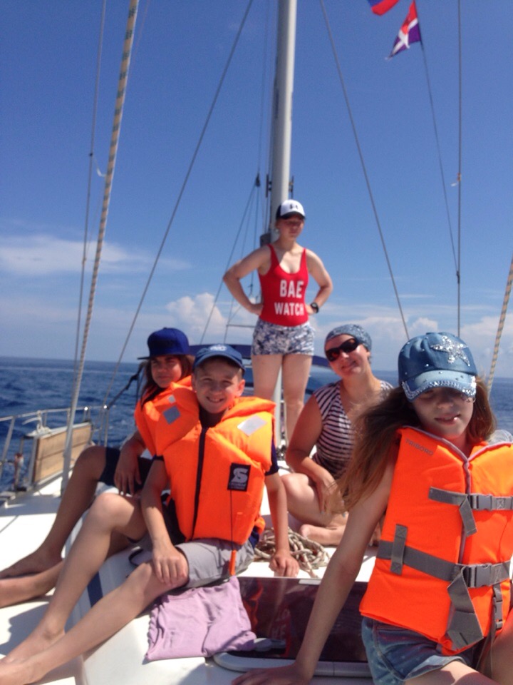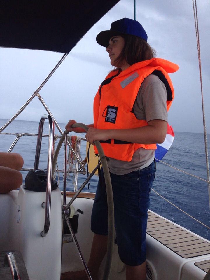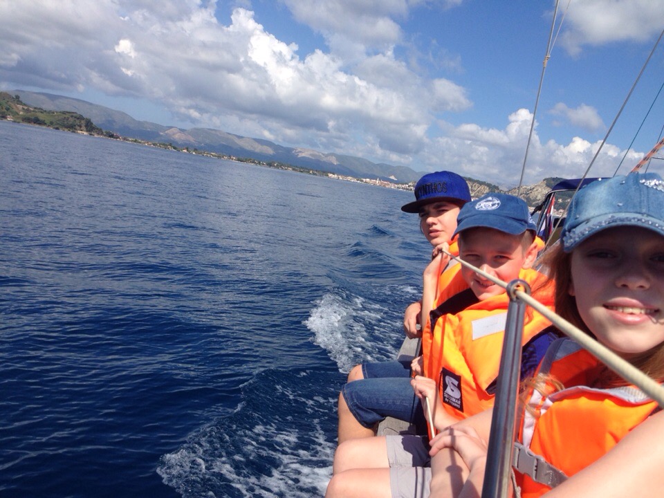 Этого дня все ждали с нетерпением. Сегодня мы должны были ступить на яхту и прокатиться по Ионическому морю. Но до этого мы успели вместе собраться, позавтракать и сделать зарядку. Потом мы разделились на 2 экипажа: 1) Соня, Вероника, Вася, Илья. 2) Настя, Володя, Костя, Андрей, Саша. Первому экипажу повезло больше. Команда увидела трех дельфинов и попала в нехилую бурю. Вторая команда смогла походить под парусами, изучить узлы и позагорать. Еще обе команды сходили на пляж и естественно, пообедать. На ужине все смогли в неформальной обстановке сравнить плавания, а уже позже покупаться в волнующемся море. Спустя минут 15 желающие поиграли в мафию один тур, где выиграли… мирные жители. И общий сбор уже в формальной обстановке обсудить весь прошедший день, после чего все мирно разошлись по комнаткам, но Мафия еще гуляла на свободе…
