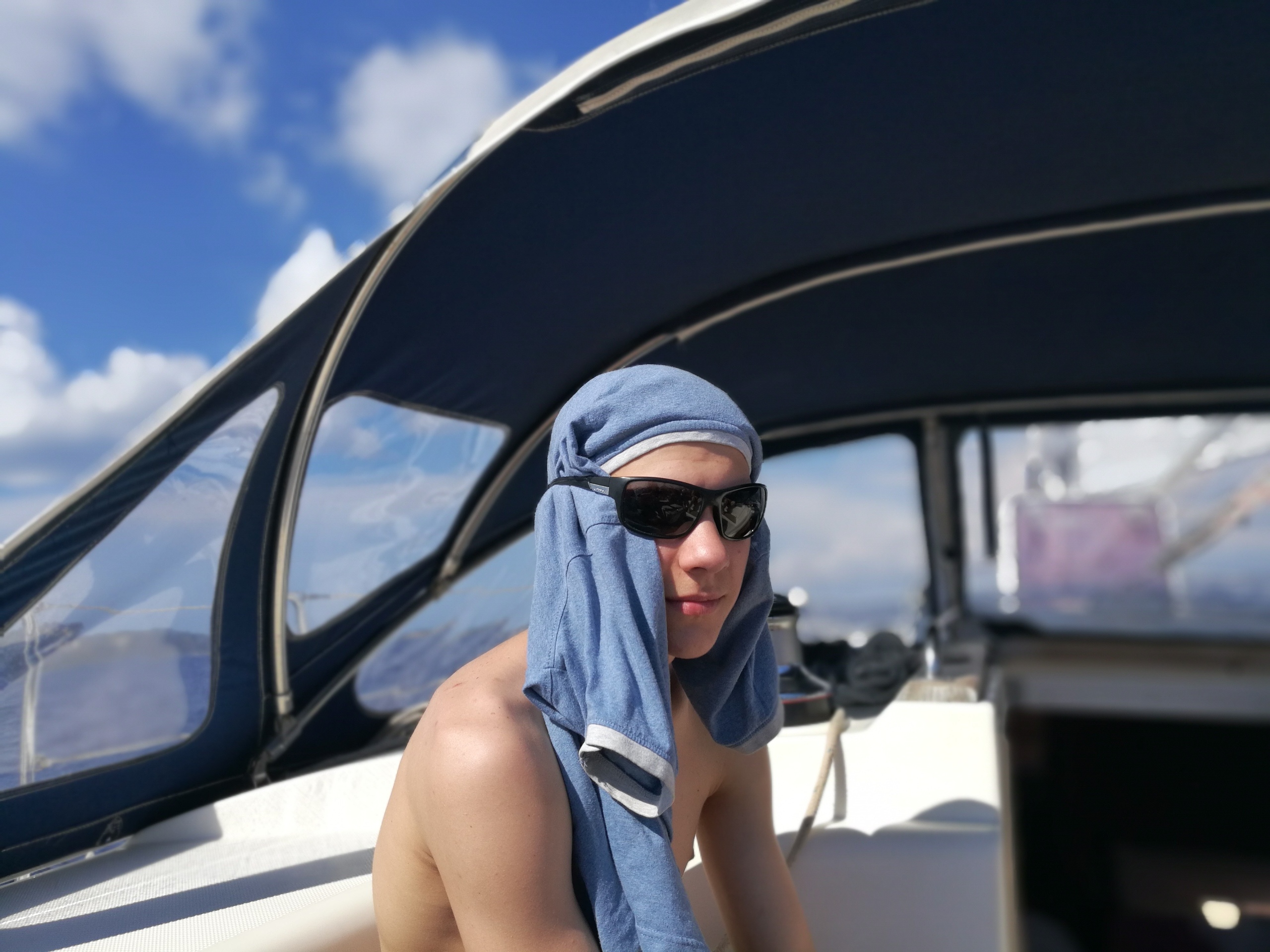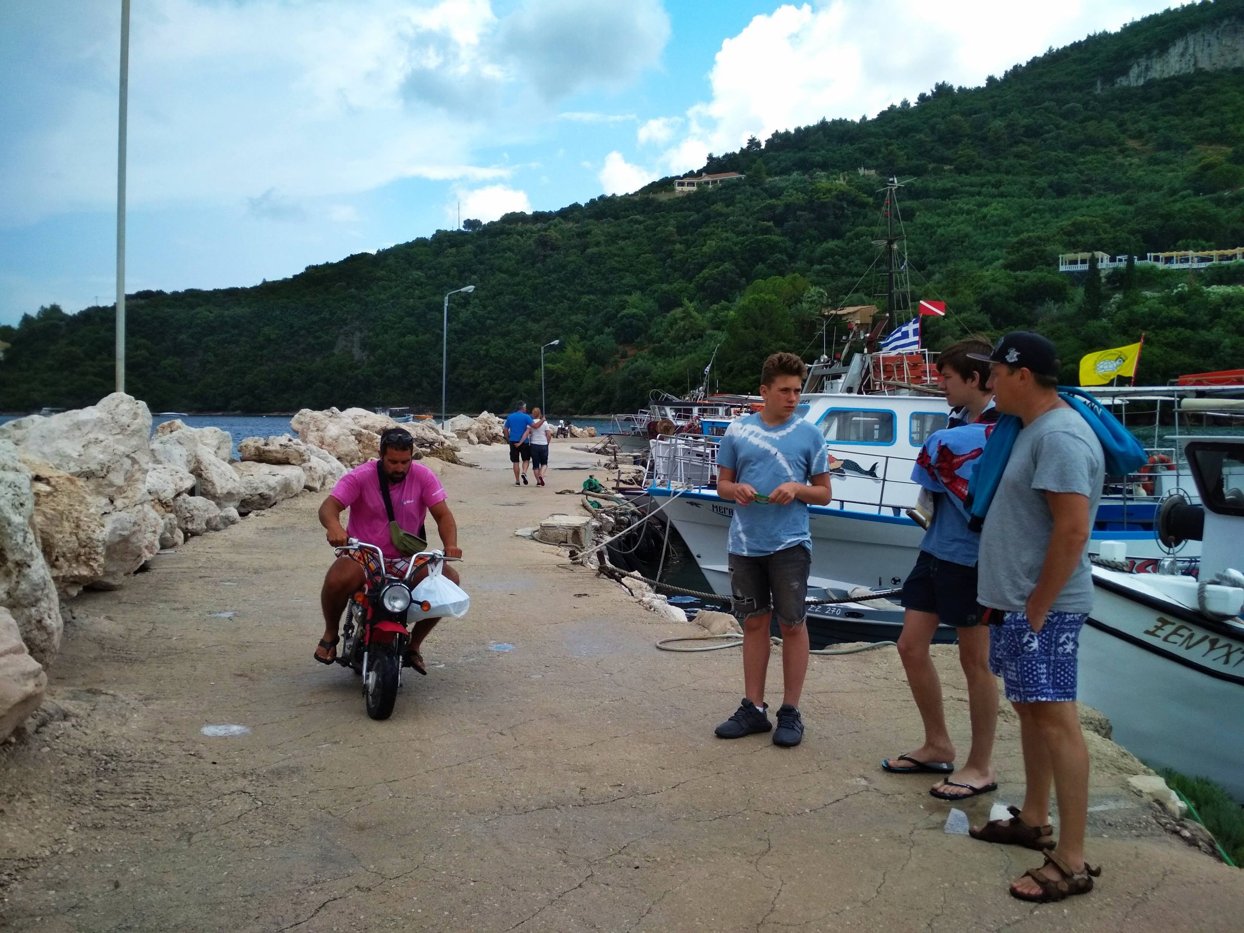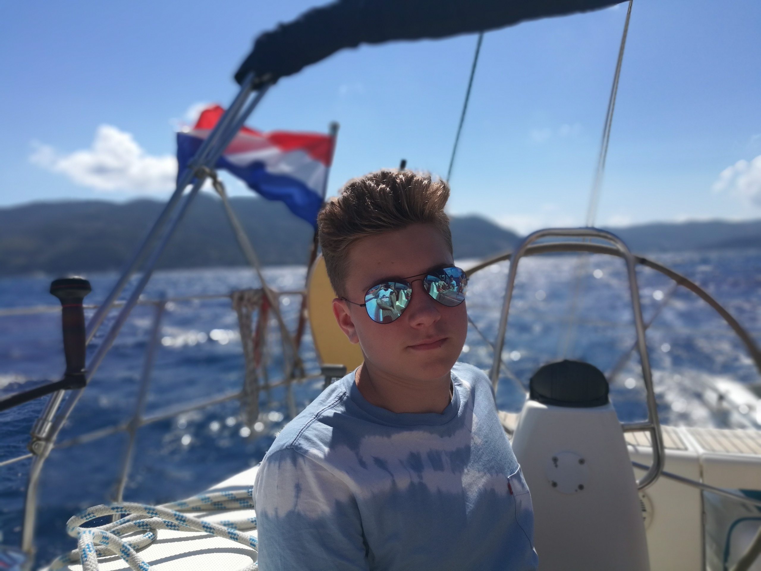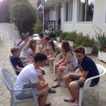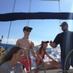 Этого дня все ждали с нетерпением. Сегодня мы должны были ступить на яхту и прокатиться по Ионическому морю. Но до этого мы успели вместе собраться, позавтракать и сделать зарядку. Потом мы разделились на 2 экипажа: 1) Соня, Вероника, Вася, Илья. 2) Настя, Володя, Костя, Андрей, Саша. Первому экипажу повезло больше. Команда увидела трех дельфинов и попала в нехилую бурю. Вторая команда смогла походить под парусами, изучить узлы и позагорать. Еще обе команды сходили на пляж и естественно, пообедать. На ужине все смогли в неформальной обстановке сравнить плавания, а уже позже покупаться в волнующемся море. Спустя минут 15 желающие поиграли в мафию один тур, где выиграли… мирные жители. И общий сбор уже в формальной обстановке обсудить весь прошедший день, после чего все мирно разошлись по комнаткам, но Мафия еще гуляла на свободе…