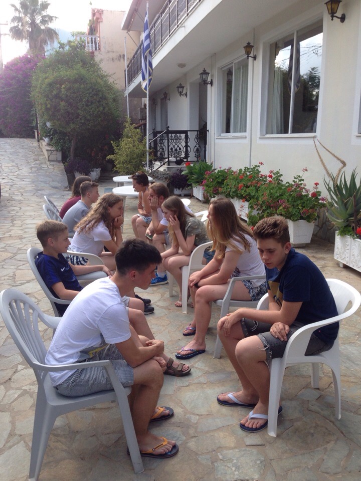 В 4 часа утра, в аэропорту Пулково собрались спящие ребяты и бодрые взрослые. Все они, предвкушая интересную поездку, солнце, море, соленые брызги еле дотерпели до самолета. При приземлении по левому борту мы увидели черную, как смоль, лошадь. Интересно, а примета про черную кошку работает с лошадью… Впрочем никого это не волновало. Все были очарованы бирюзовой водой моря и зелеными покровами лесов. По прибытии успешно пройдя паспортный контроль и что примечательно, никого не растеряв, мы сели на приятный свиду автобус и направились в отель. И в нашем трехзвездочном Argassi Beach hotel все было бы прекрасно, если бы не завтрак, который нас «немного» разочаровал, но нет худа без добра и добра без худа. Впрочем приятные номера и завораживающий вид на лесное полотно деревьев компенсировал моральный ущерб, нанесенный завтраком. Уставшие, но уже сытые, путешественники понеслись на сбор, который общим мы назвать не можем из-за отсутствия в Греции Оли и Кости. Мы узнали распорядок дня и насладились… бурей! С дождем, громом и молнией. Безобразие длилось минут 15 после чего все желающие пошли на пляж, где их ждал песок, теплое море и лазурное небо над головой.