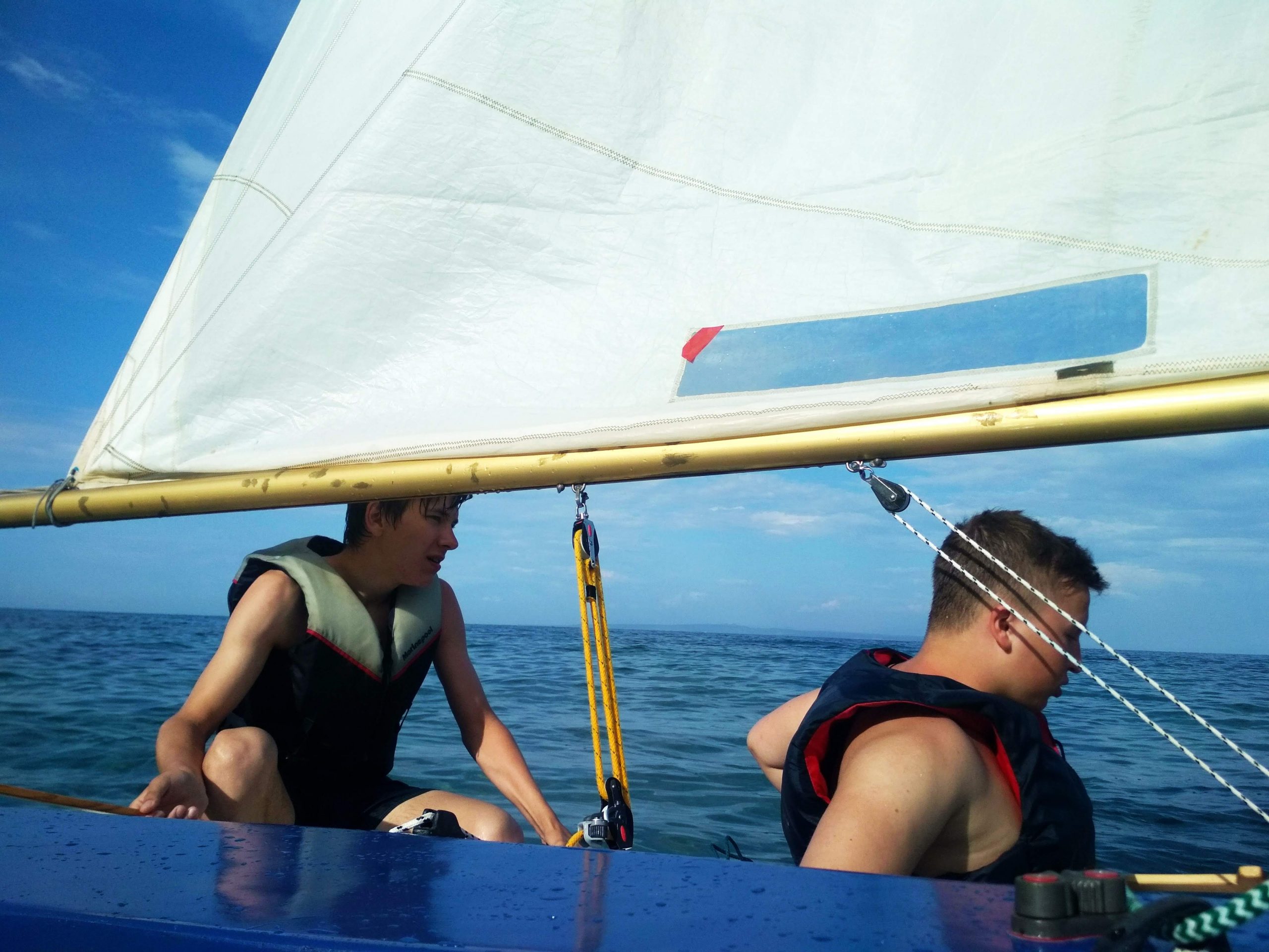 Сегодня мы спустили на воду швертбот (маленькую лодку олимпийского класса), ловили ветер в паруса, обедали вкуснейшими макаронами по-флотски на яхте, ближе знакомились с технологиями виртуальной реальности и радовались победе сборной России по футболу! Go Russia!