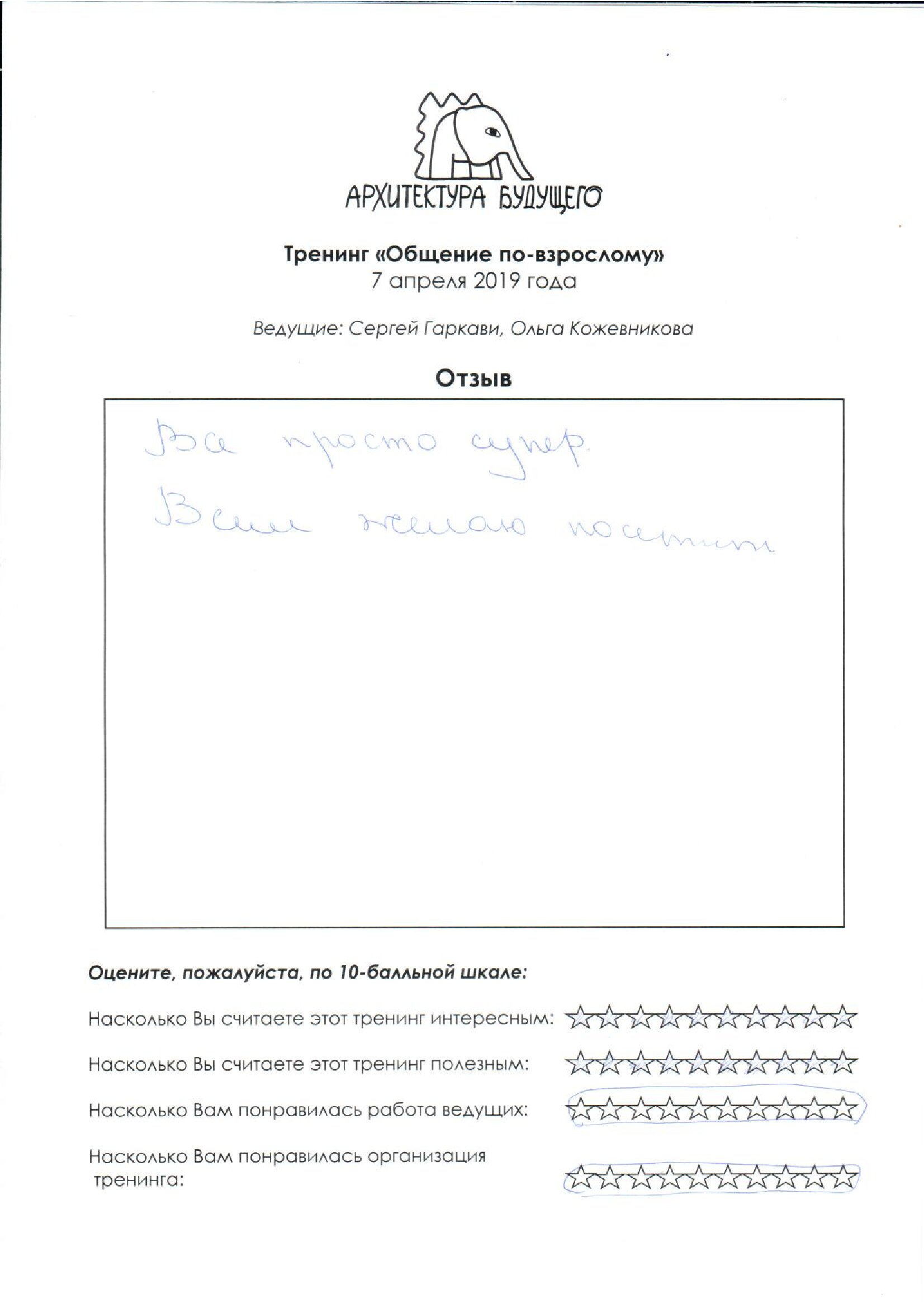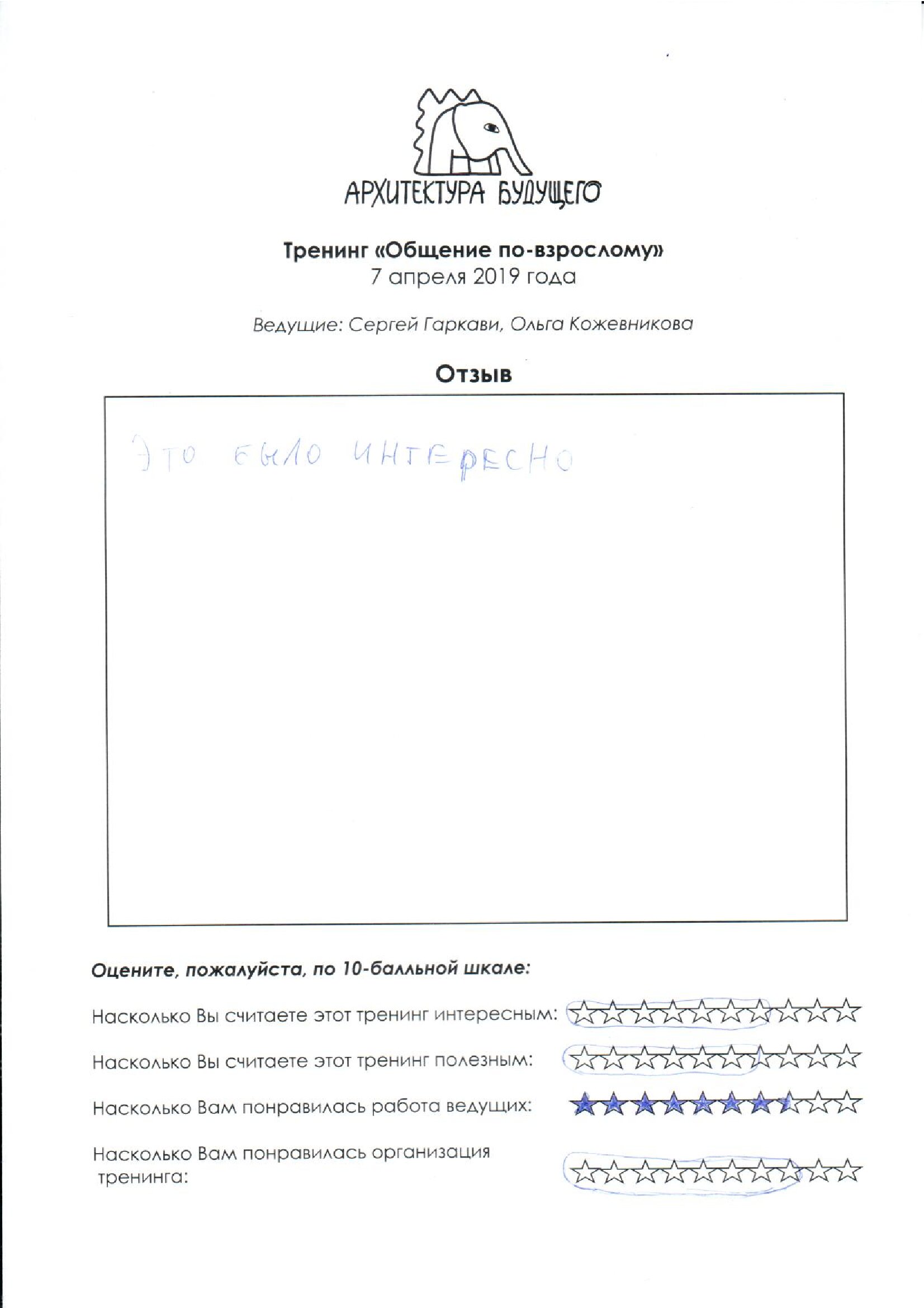 Отзыв № 6: Все супер. Было очень интересно.