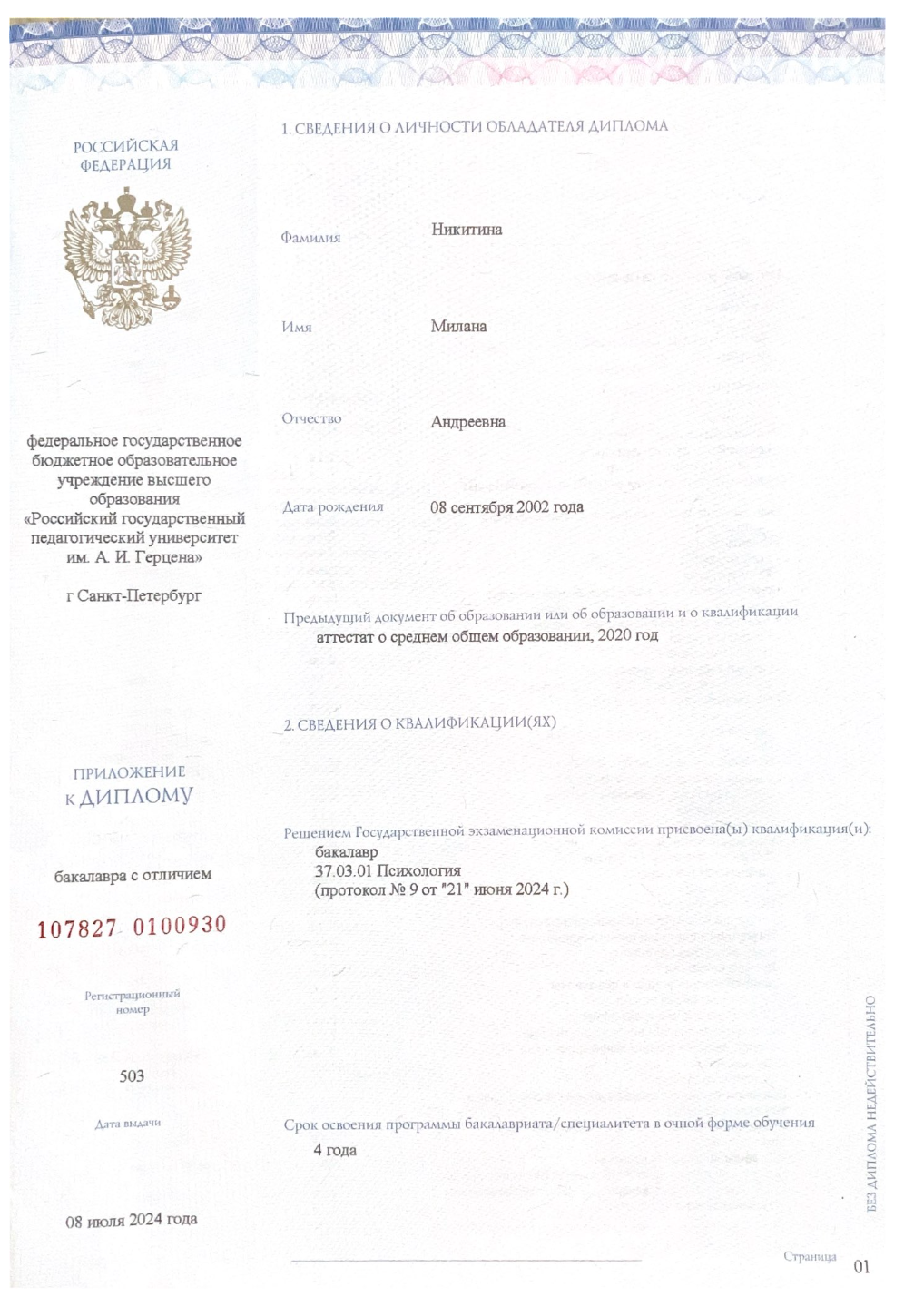 Бакалавриат по направлению «Психология» РГПУ им. А. И. Герцена (2024г.)
